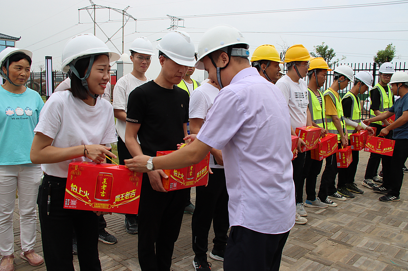 會(huì)議結(jié)束后,蘇小亮帶隊(duì)赴項(xiàng)目現(xiàn)場(chǎng)慰問一線人員,向工作人員送去慰問和感謝,囑咐大家做好防暑降溫措施,合理安排工作作息,注意身體健康。