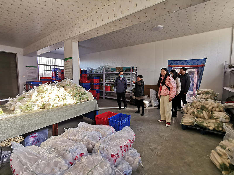會后,在綠康凈菜產業帶頭人楊敏女士的帶領下,全體黨員干部前往蔬菜種植、加工基地參觀學習。活動中,大家認真聆聽楊敏女士講述綠康凈菜合作社的發展歷程及產業幫扶成效,了解產業發展中遇到的困難。財務人員從專業角度出發,介紹相關金融扶持政策,并協助向新城相關部門溝通補助事宜,向相關金融機構爭取資金支持等,切實解決聯系單位生產經營中遇到急事、難事,將黨史學習教育落到實處。