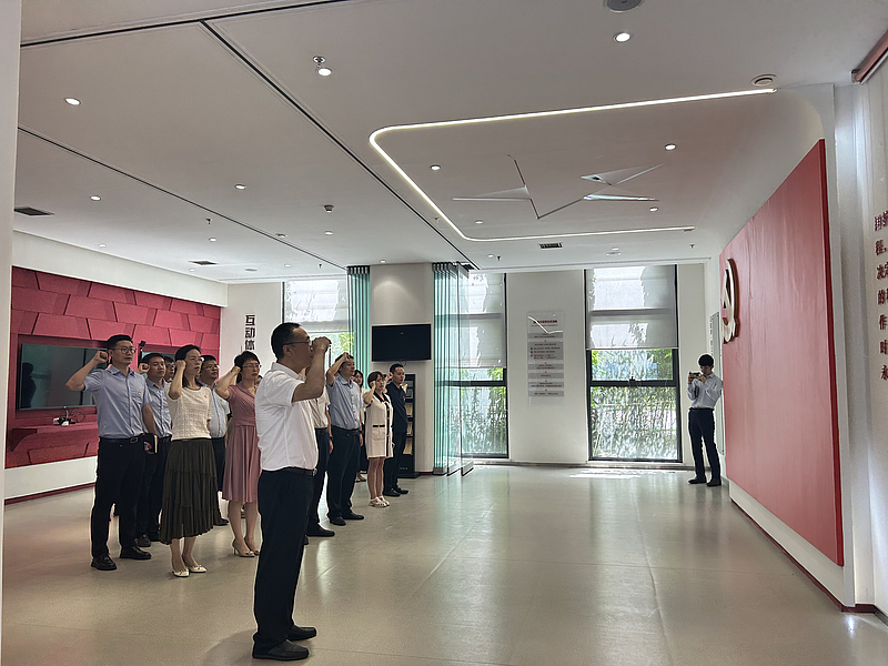 參觀學習結束后,全體黨員面對鮮紅黨旗,重溫入黨誓詞,錚錚誓言鏗鏘有力、莊嚴承諾擲地有聲,充分體現(xiàn)了新時代共產(chǎn)黨員對黨忠誠、為黨分憂、為黨盡責、為黨奉獻的堅定決心。
