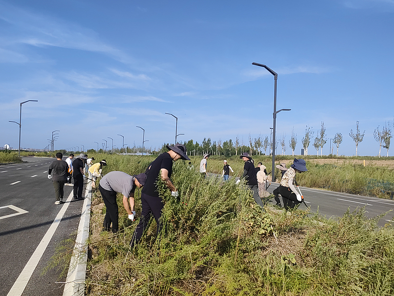 在活動現場,專業人員詳細講解了工具的使用注意事項。隨后,眾人手持各式各樣的除草工具,積極投入到行動中。他們不僅鏟除了道路沿線的雜草,還及時清理了周圍的煙頭、塑料袋以及掉落的樹枝等雜物。大家充分發揮不怕苦、不怕臟、不怕累的鐵軍精神,有的徒手拔除雜草,有的用鐮刀精心收割,有的負責清運雜草。眾人分工明確,密切配合,整個過程井然有序。忙碌的身影交織在一起,構成了一道格外靚麗的風景線。