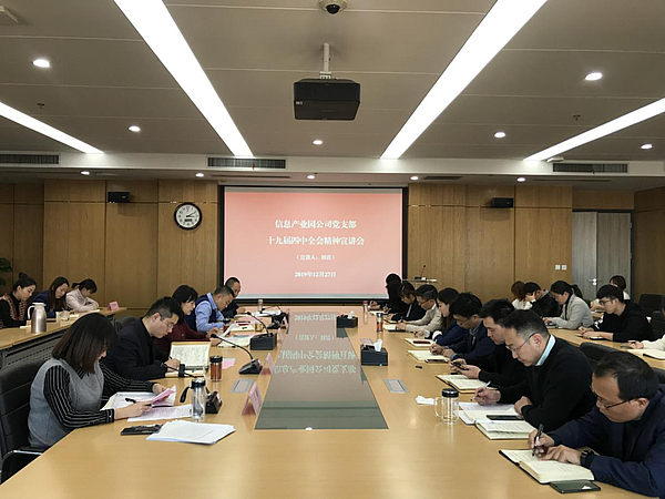 2019年12月27日下午,信息產(chǎn)業(yè)園公司黨支部組織召開十九屆四中全會精神宣講會,公司全體員工參加。