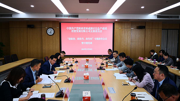 3月30日,信息產(chǎn)業(yè)園公司在第一會議室召開“講政治、敢擔(dān)當(dāng)、改作風(fēng)”專題教育會議暨專題黨課。