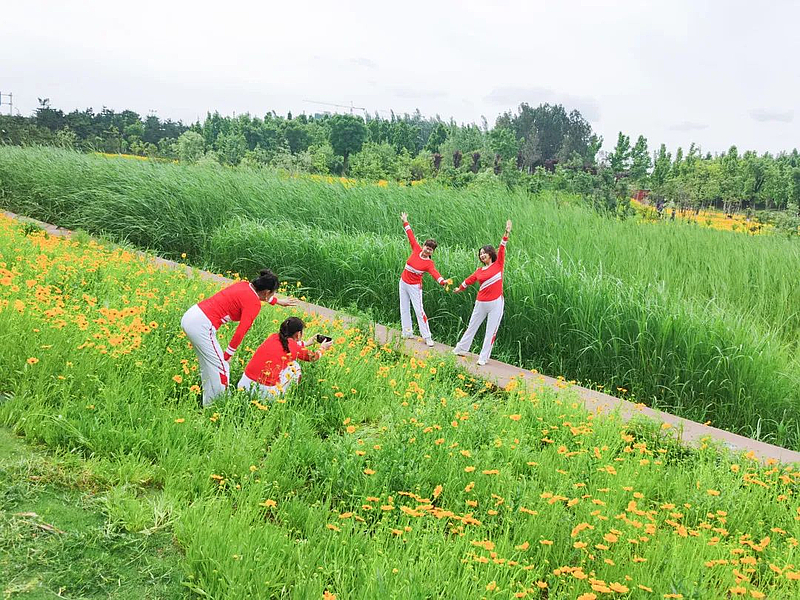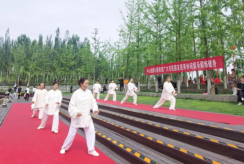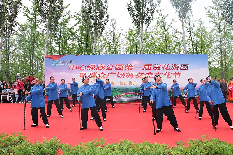 園內(nèi)枝頭梢末,花兒們正鉚足勁兒爭(zhēng)相吐艷,在交流表演現(xiàn)場(chǎng),廣場(chǎng)舞、太極拳、舞龍隊(duì)的精彩表演引得陣陣喝彩和熱烈掌聲。