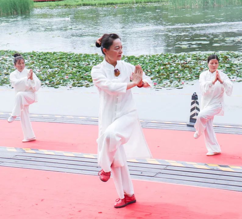 百余位武術(shù)、太極表演者身著古樸服裝,在柔和的背景音樂中舒緩起手,舒展身體,于動(dòng)靜之中詮釋太極魅力,讓在場(chǎng)的觀眾感受到了中華民族傳統(tǒng)文化瑰寶太極的魅力。