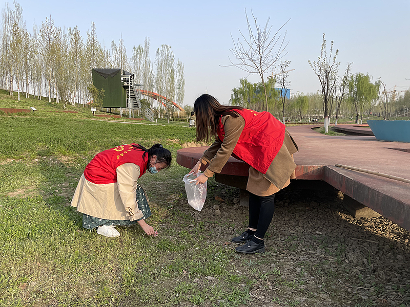 3月28日下午,發(fā)展集團團支部在灃西新城中心綠廊舉辦“綠色家園 你我共建”志愿服務(wù)活動,全體團員參加。