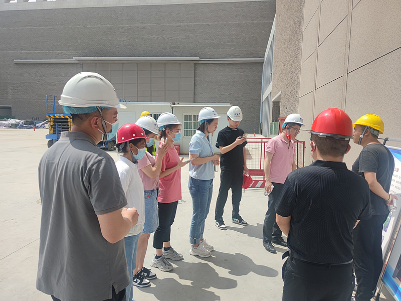 在項目現場,相關部門負責人及青年突擊隊隊員認真聽取項目負責人工作匯報,仔細詢問工期進度,詳細了解當前集團公司房建項目建設推進過程中遇到的難點和堵點問題,現場研究解決問題的方法措施。