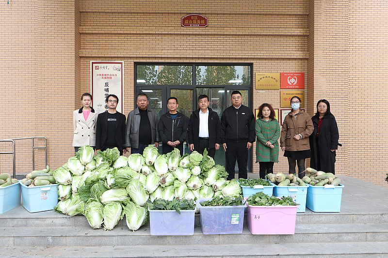 采摘結束后,集團團委團員代表與工會員工代表一同前往天福和園社區“反哺堂”長者食堂進行蔬菜捐贈,大量的新鮮無公害蔬菜將為“反哺堂”20余位老人和天福和園社區10余位臥床老人的冬日飲食提供儲糧,社區主要負責人對灃西集團的公益捐贈活動表示感謝。