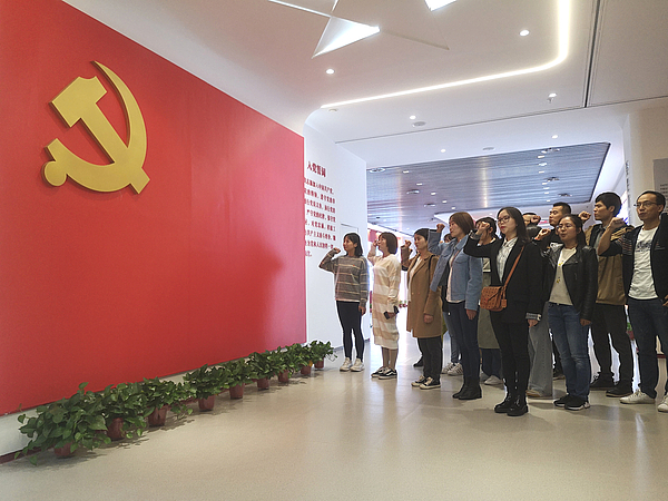 在紅色會客廳,全體黨員面向鮮紅的黨旗,排列成整齊的隊伍,莊嚴宣誓,擲地有聲的誓言表達了為共產主義事業奮斗終生的堅定信念。宣誓之后,圍繞“憶初心、擔使命”主題,結合主題教育開展以來的認識與收獲以及對本職工作的促進作用等,大家暢所欲言,進行了充分的交流與討論。