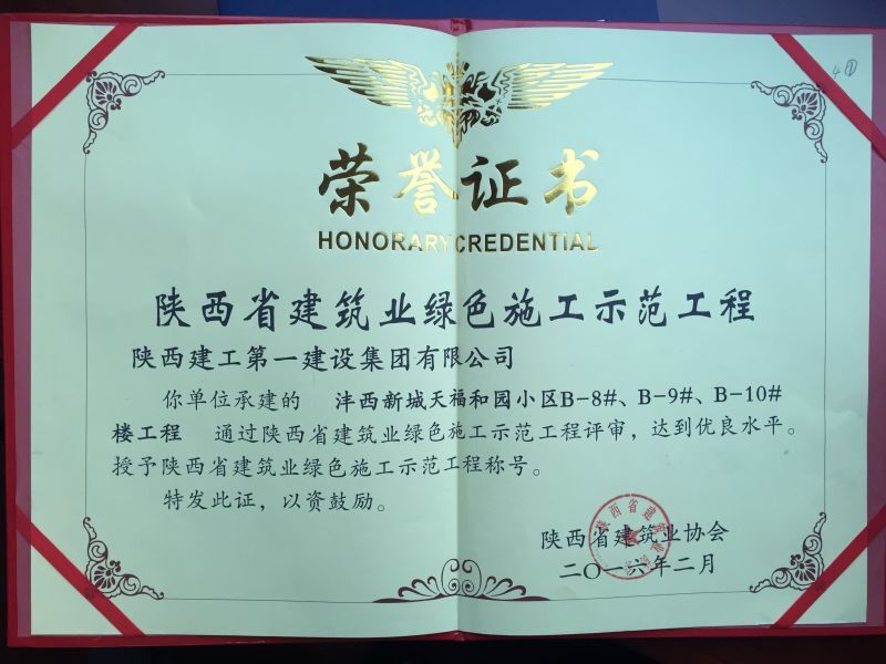 天福和園一期B8#、B9#、B10#樓工程榮獲陜西省建筑業綠色施工示范工程