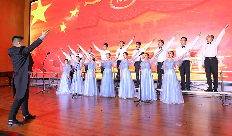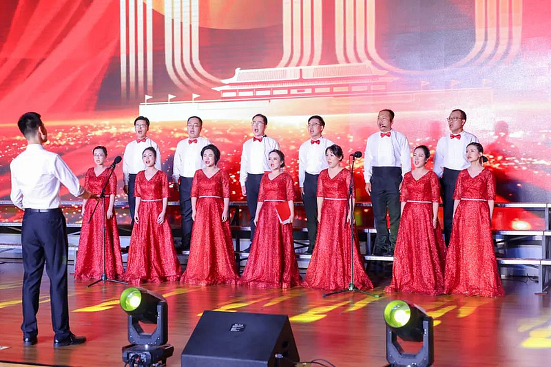 一首紅歌就是一面旗幟。“你卷走黑夜迎來晨曦,火紅的心把我們集合在一起,救國救民是你喊出的真理,中國的明天放在了我們心里……”《迎風飄揚的旗》《紅旗飄飄》《不忘初心》《陽光路上》等用奔騰奮發的曲調,展現在中國共產黨的堅強領導下,中華民族實現了從站起來、富起來到強起來的偉大飛躍,表達出灃西人堅定不移跟黨走,拼搏奮進新時代的使命。