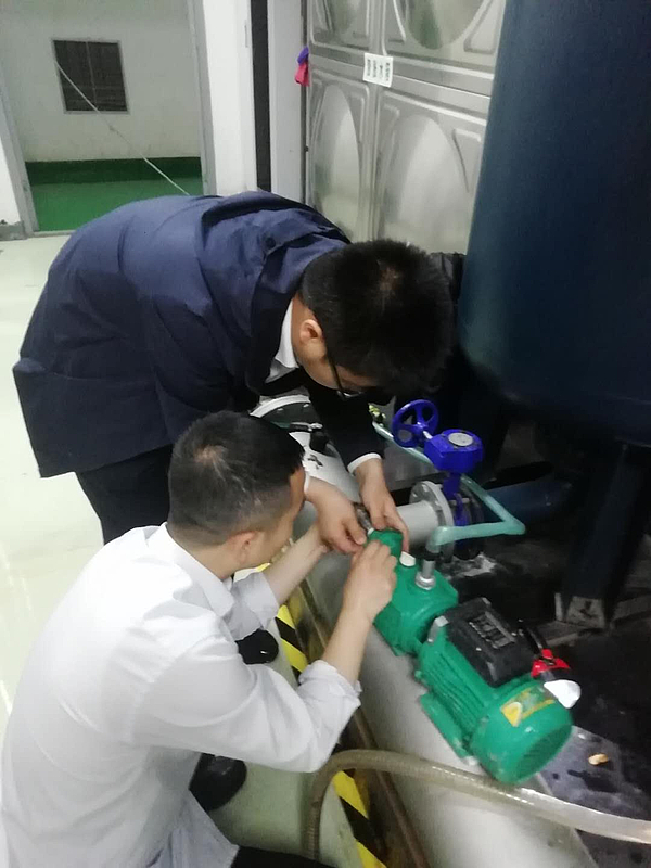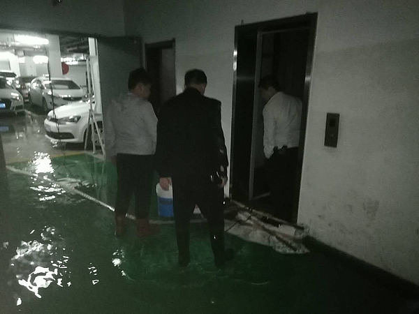 根據這一方案,現場立即組織實施,緊急采購材料、積極聯系外協力量、尋找各種資源一齊發力,有序展開,保障搶修工作在最短的時間內順利進行。同時,為盡早排干地下室積水,公司工程維修人員、保安、保潔人員,包括外協人員紛紛迎難而上,不怕積水弄濕鞋子和衣服,義無反顧地投入到排水工作中。與此同時,搶修工作也在緊張有序地進行中。
