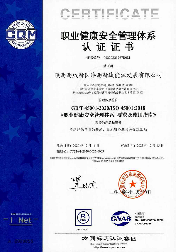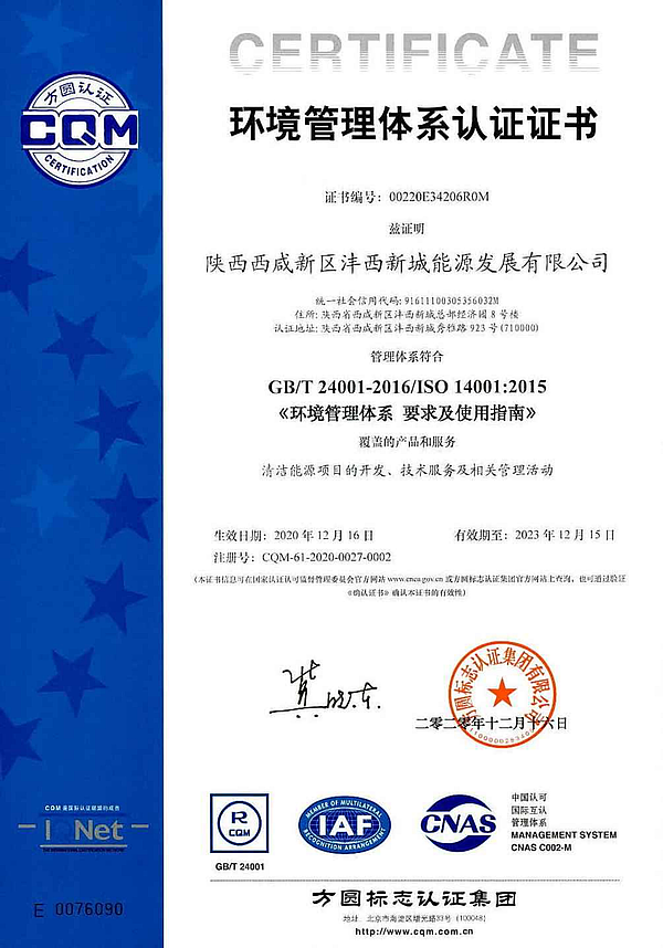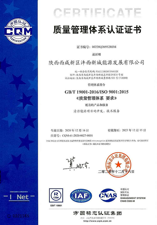 近日,灃西新城能源公司順利通過(guò)方圓標(biāo)志認(rèn)證集團(tuán)有限公司審核專(zhuān)家組QES(質(zhì)量、環(huán)境和職業(yè)健康安全管理體系)初次認(rèn)證審核,并于12月16日順利獲得了QES管理體系認(rèn)證證書(shū),為推進(jìn)公司規(guī)范化建設(shè),提升管理水平,增強(qiáng)企業(yè)競(jìng)爭(zhēng)力,奠定了良好基礎(chǔ)。