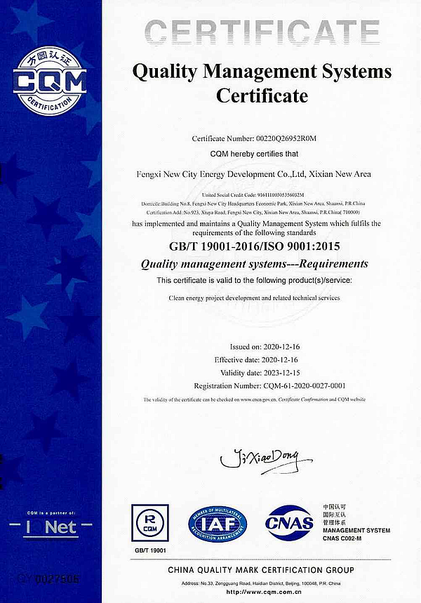 能源公司順利獲得QES管理體系認(rèn)證證書(shū)