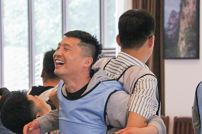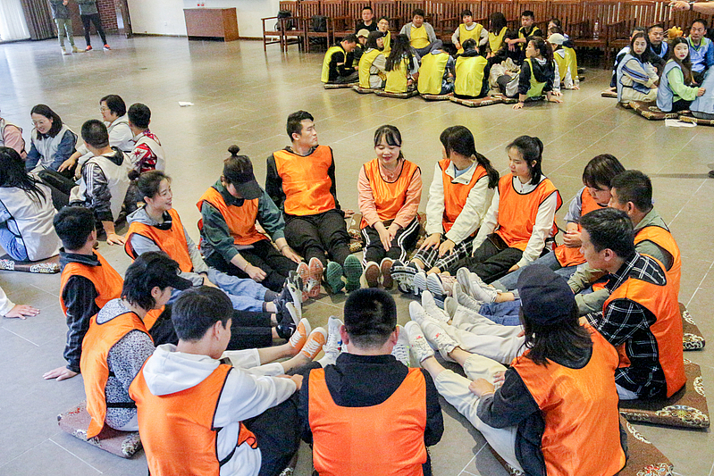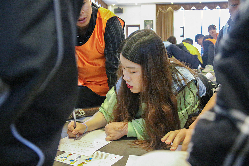 培訓開營儀式后,首先是破冰分組,隨后各項活動循序漸進。小分隊們領取了各自的專屬顏色馬甲,開始寫隊名、唱隊歌,“灃華正茂”隊、“西北狼”隊……各小分隊盡展風采,嘹亮的口號聲此起彼伏。