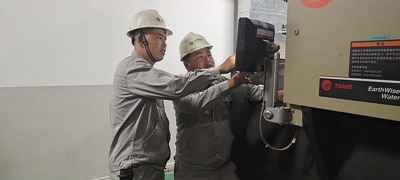 各項目負責人帶領(lǐng)值班人員對供冷系統(tǒng)全方位檢查,對冷機、循環(huán)水泵、冷卻塔、風機等設(shè)備進行巡查檢修,確保設(shè)備安全、穩(wěn)定、高效運行。客服人員對所有用冷單位進行全面走訪。他們頂著炎炎烈日,冒著高溫酷暑,從總部經(jīng)濟園到陜中二附院,從三一筑工到交大創(chuàng)新港,到處都能見到他們的身影。他們深入現(xiàn)場了解客戶的需求,在走訪過程中遇到戶內(nèi)溫度不適、管道堵塞等問題,第一時間聯(lián)系維修人員上門處理,積極為客戶解決用冷的各種問題,讓客戶真切感受到貼心的服務,不斷踐行“我為群眾辦實事”的宗旨。