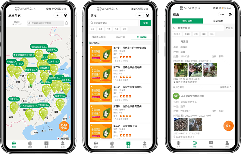 通過“共享農技員”“共享農課堂”“共享農市場”三大技術服務體系,致力于實現農業領域的“科技幫產、數據幫銷、數據幫策”。