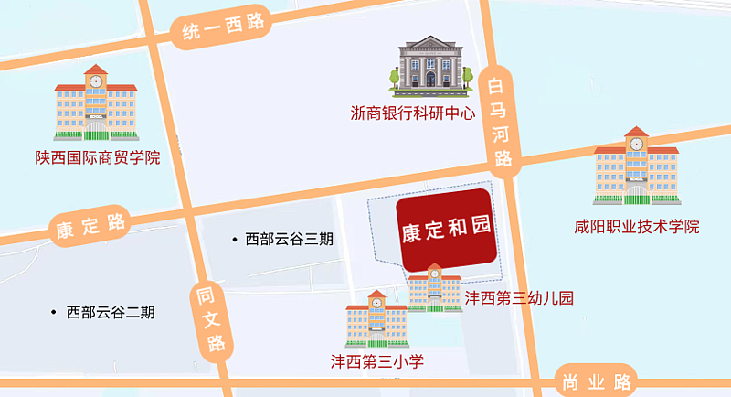 周邊市場:底商東側為咸陽職業技術學院,南側為灃西第三學校及灃西第三幼兒園,西側為西部云谷二三期,北側為浙商銀行研發中心及附屬商業綜合體,擁有大量消費群體,商業結構穩定。