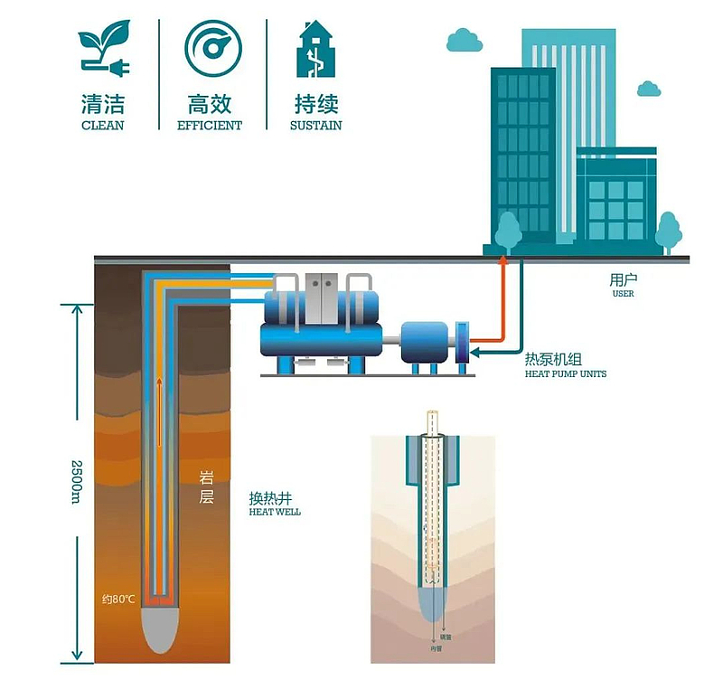 2018年,江億、張國(guó)偉等5位院士及9位專(zhuān)家教授在技術(shù)論證會(huì)上一致認(rèn)為,中深層地?zé)岬芈窆芄峒夹g(shù)具有取熱持續(xù)穩(wěn)定、地溫恢復(fù)快、環(huán)境影響低的特點(diǎn),適宜作為清潔供熱熱源。經(jīng)現(xiàn)場(chǎng)實(shí)測(cè),該技術(shù)比傳統(tǒng)供暖技術(shù)節(jié)能30%以上,有很好的經(jīng)濟(jì)、社會(huì)、環(huán)境效益。