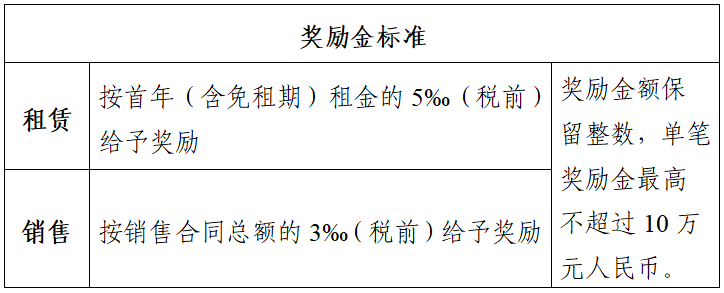 (二)租賃:租賃客戶簽署租賃合同,并付清租賃保證金及首年租金后,一次性兌現(xiàn)獎(jiǎng)勵(lì)金。