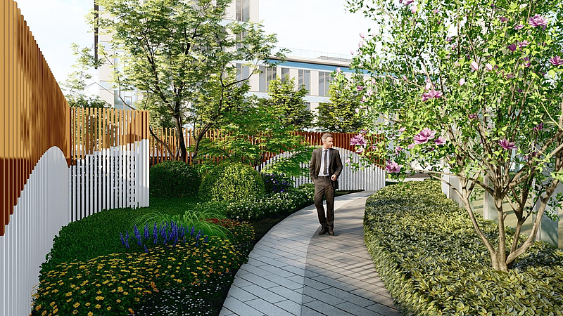 采用下沉廣場、輕氧架空庭院、休閑花園、臺地景觀、生態(tài)小廣場、景觀綠島等多種設(shè)計,建筑首層設(shè)置架空層,通過景觀美化手法,打破室內(nèi)外邊界,讓自然美景與建筑完美融合,感受微風,靜聽細雨,樂享自然。