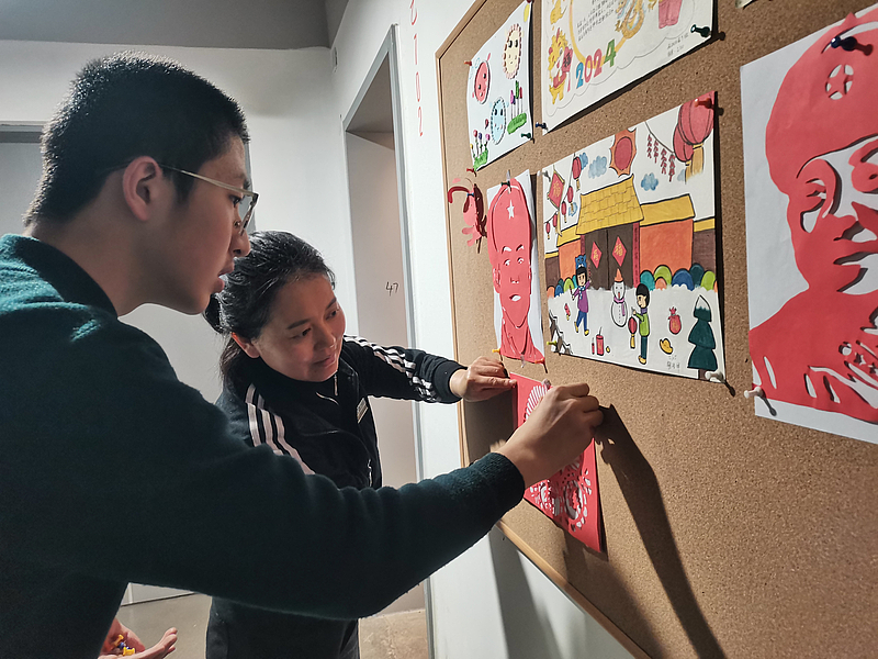此外,宿舍美化大賽上,學(xué)生和宿管共同用書法、剪紙、繪畫等藝術(shù)表現(xiàn)形式,裝扮宿舍樓內(nèi)文化展板,通過(guò)美化宿舍生活環(huán)境,促使學(xué)生們的人文素養(yǎng)和審美進(jìn)一步提升。