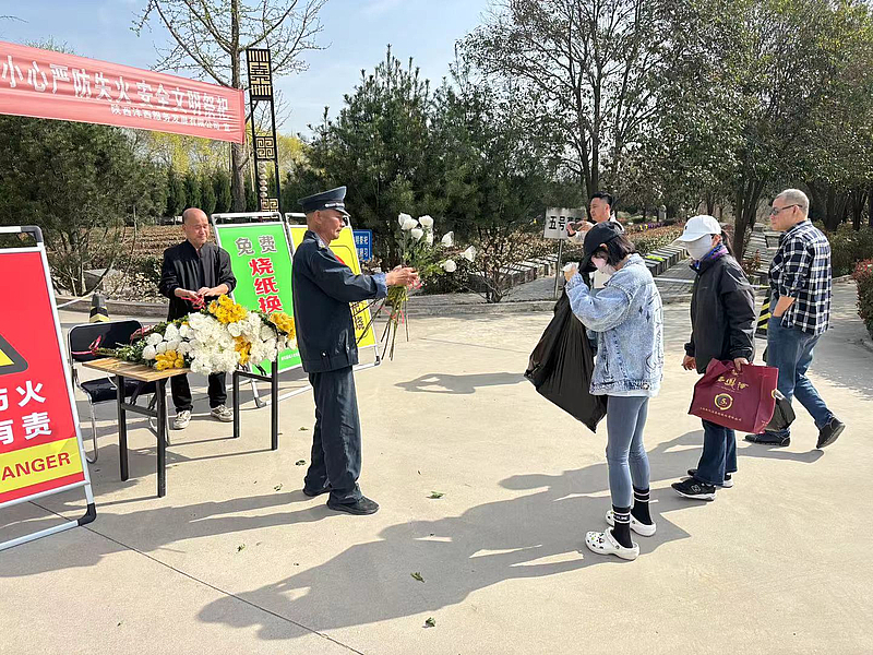 又是一年清明時(shí),春風(fēng)細(xì)雨寄哀思。為營(yíng)造安全、文明、有序的祭掃環(huán)境,推進(jìn)移風(fēng)易俗,灃西服務(wù)積極貫徹綠色發(fā)展理念,引導(dǎo)陵園祭祀群眾文明祭掃,廣泛開(kāi)展“無(wú)煙陵園”“鮮花換紙錢”等活動(dòng),以現(xiàn)代文明的表達(dá)方式傳承賡續(xù)中華民族慎終追遠(yuǎn)的深沉情感。