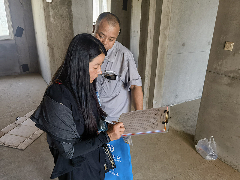 在驗房過程中,灃西服務提供“一對一”式驗房服務,工程維修全程貼心陪伴,讓業主能夠直觀地看到房屋的品質,即時拍照、現場文字記錄查驗發現的問題,耐心傾聽業主反饋,并做好現場解答,真正從業主角度出發去查驗房屋,從而提升驗房效率和客戶滿意度。
