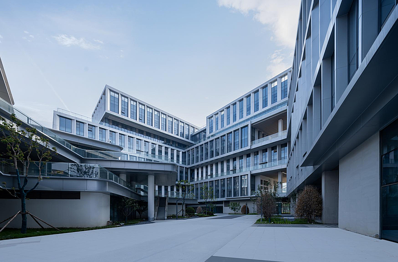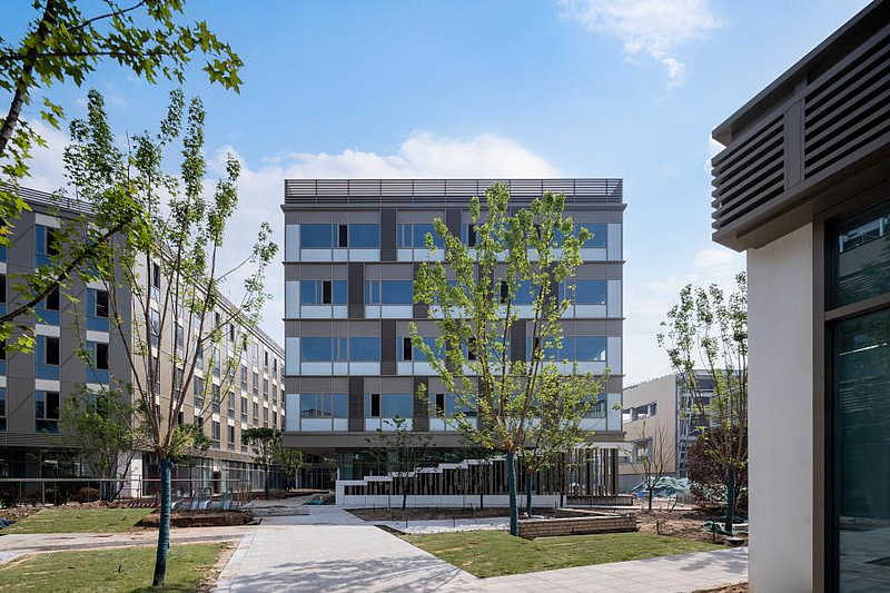 5單元位于秦創(chuàng)原生態(tài)科創(chuàng)島北側(cè),占地面積130.6畝,總建筑面積22.44萬(wàn)㎡(地上建面14.29萬(wàn)㎡,地下建面8.15 萬(wàn)㎡,車位數(shù)量1683個(gè)),是集科研辦公、創(chuàng)客中心、品質(zhì)住宅及花園商業(yè)為一體的科技轉(zhuǎn)化研發(fā)基地,建筑采用圍合式布局形式,通過(guò)退臺(tái)及錯(cuò)層的手法,豐富城市天際線變化的同時(shí),提升區(qū)域整體的標(biāo)識(shí)性,活化內(nèi)外空間的聯(lián)系。