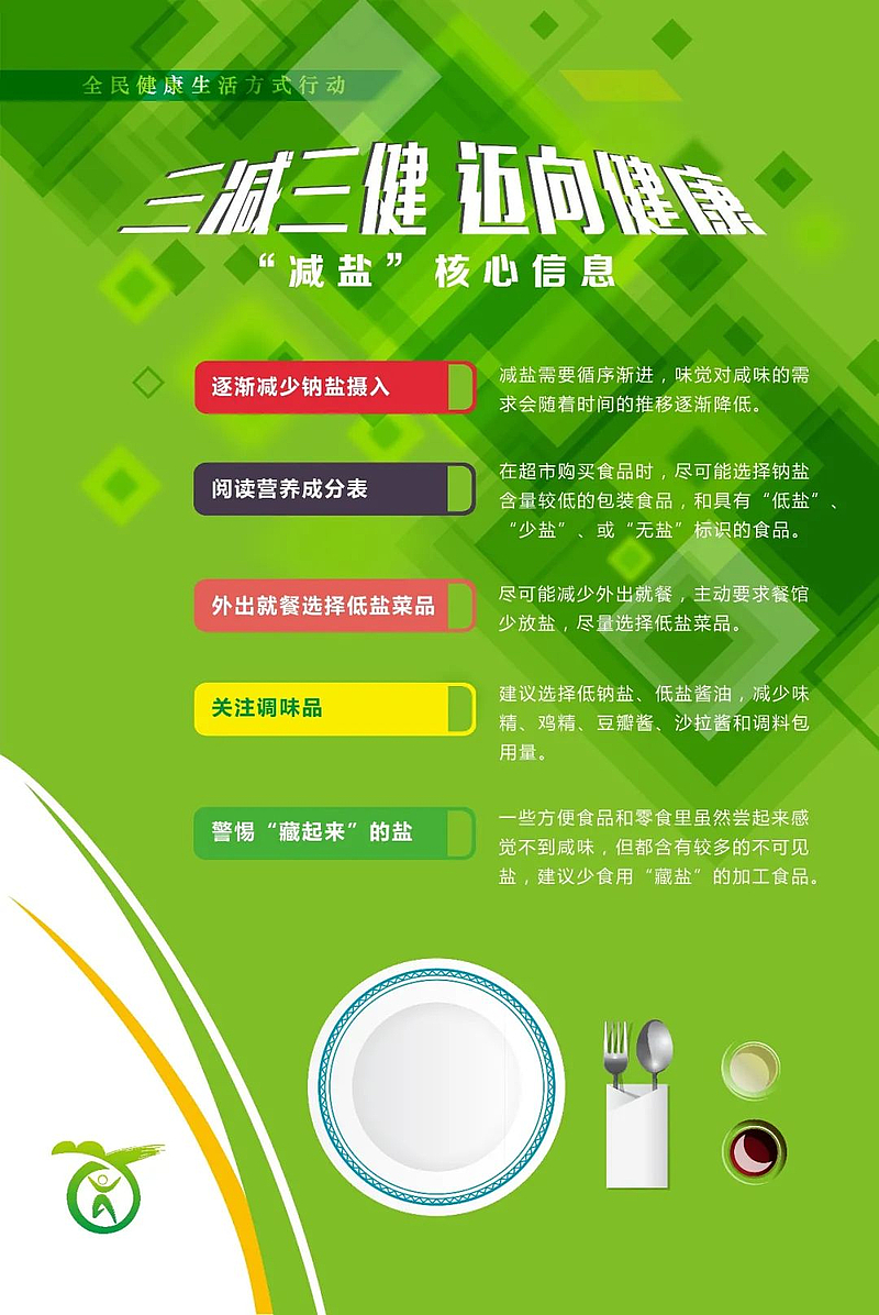 “三減”即減鹽、減油、減糖,作為生活必需的調味品,如果攝入過量,可能會導致慢性病的發(fā)生,其對健康的影響不可小覷。