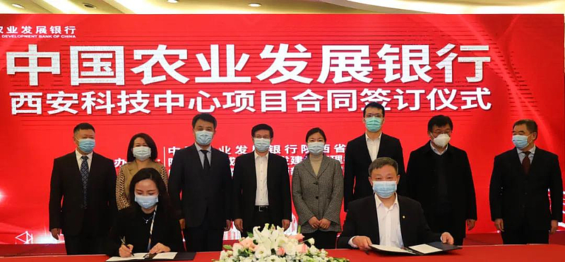 2021年12月20日,中國農業發展銀行西安科技中心項目正式簽約。中國農業發展銀行陜西省分行黨委副書記、副行長邢利民,灃西集團信息產業園公司主要負責人代表雙方簽約。陜西省地方金融監管局黨組成員、副局長劉迪,西安市金融工作局黨組書記、局長王麗,灃西新城黨委書記、管委會主任劉宇斌,西咸新區管委會副主任趙孝,灃西集團黨委書記、董事長楊建柱,灃西集團總經理姜勤發,中國農業發展銀行陜西省分行黨委書記、行長鄒菊方,中國農業發展銀行總行基建辦主任王岐山出席并見證簽約。