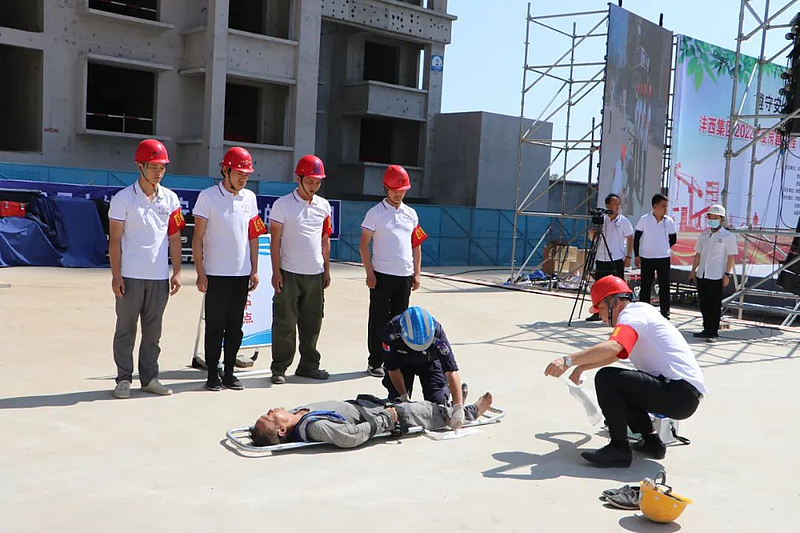 6月23日上午,灃西集團(tuán)在王道新苑項(xiàng)目現(xiàn)場(chǎng)開展2022年度房建工程(高空墜落與消防)應(yīng)急演練暨現(xiàn)場(chǎng)觀摩會(huì),集團(tuán)總經(jīng)理郭廷喜致辭并宣布演練開始,副總經(jīng)理張桂林參加。