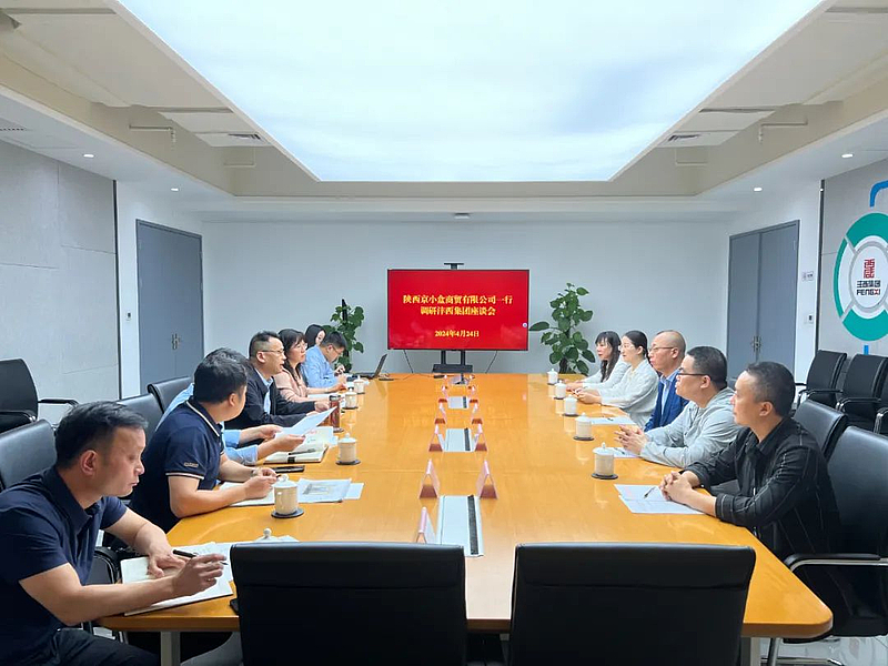 4月24日下午,陜西京小盒商貿有限公司(以下簡稱“京小盒”)領導一行來訪考察灃西集團并座談交流,灃西集團總經理郭廷喜參加。