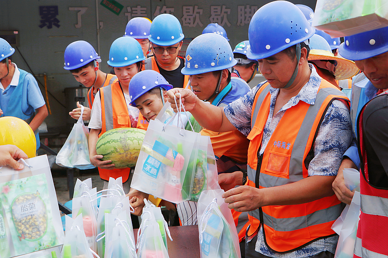 7月26日下午,灃西集團黨委書記、董事長楊建柱,總經理郭廷喜帶隊赴在建項目現場開展夏季“送清涼”慰問活動,副總經理秦繼紅、張桂林參加。夏季“送清涼”系列活動送的不僅是一把“清涼傘”、一絲“清涼風”,更是給廣大一線員工送來一份關懷、一種“溫度”。灃西集團連續多年開展夏日“送清涼”活動,以此鼓舞員工士氣,激發干事熱情。