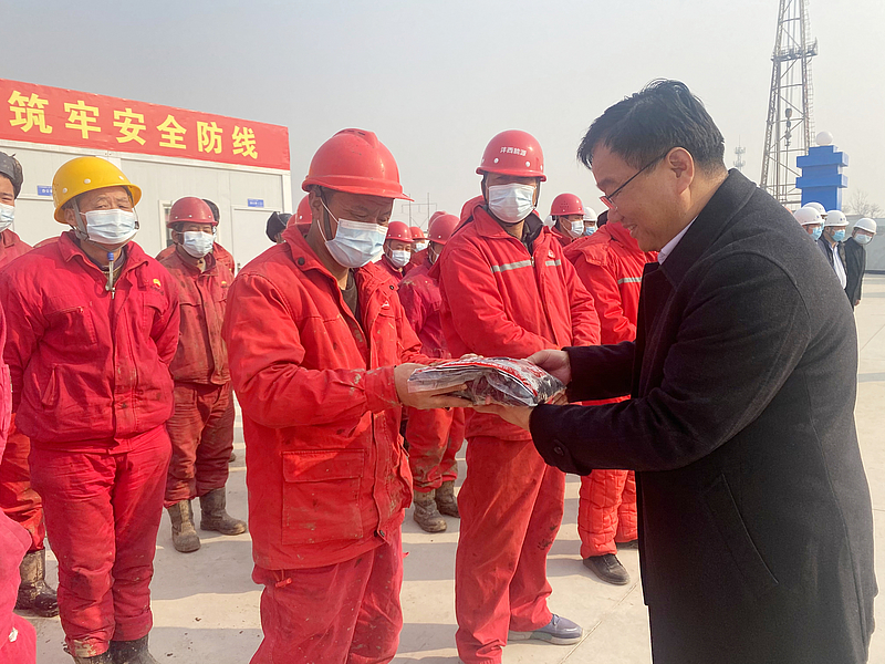 2月10日,灃西集團全體在家班子成員走訪慰問春節(jié)期間留崗工作人員,送上節(jié)日的問候和祝福。二要合理安排工程進度,提供全天候服務(wù)保障,確保春節(jié)期間項目建設(shè)取得新進展,為完成2021年建設(shè)任務(wù)開好頭。三要嚴(yán)格落實上級要求,統(tǒng)籌做好項目建設(shè)進度、安全生產(chǎn)及疫情防控等各項工作,確保春節(jié)期間項目建設(shè)平穩(wěn)有序開展。