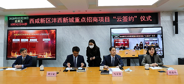 2月28日上午,西咸新區灃西新城重點招商項目“云簽約”儀式在總部經濟園5號樓第一會議室舉行。