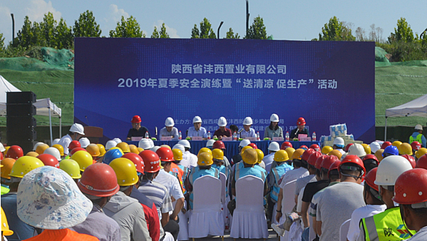 7月31日,置業(yè)公司開展2019年夏季安全演練暨“送清涼 促生產(chǎn)”活動,為奮戰(zhàn)在高溫一線的施工人員送去西瓜、綠豆、白糖、藿香正氣水等防暑降溫慰問品。新城規(guī)劃建設(shè)局副局長呂健、集團公司紀(jì)委書記尚海峰、置業(yè)公司董事長葛上義以及施工及監(jiān)理單位主要負(fù)責(zé)同志參加本次活動。