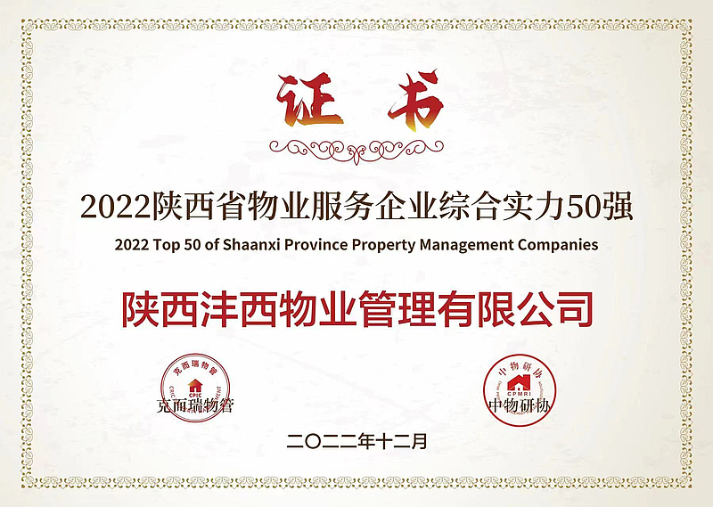 12月26日,克而瑞物管與中物研協(xié)聯(lián)合發(fā)布了2022陜西省物業(yè)管理行業(yè)發(fā)展報(bào)告,同期揭曉“2022陜西省物業(yè)服務(wù)企業(yè)綜合實(shí)力50強(qiáng)”,灃西集團(tuán)物業(yè)公司憑借優(yōu)異的綜合實(shí)力名列其中。未來(lái),物業(yè)公司將繼續(xù)匯聚黨建紅色力量,緊跟新城、集團(tuán)發(fā)展步伐,堅(jiān)守初心,秉持匠心,把握市場(chǎng)發(fā)展趨勢(shì),乘勢(shì)而上,以百倍用心換客戶十分滿意,擦亮灃西物業(yè)高品質(zhì)、多樣化...