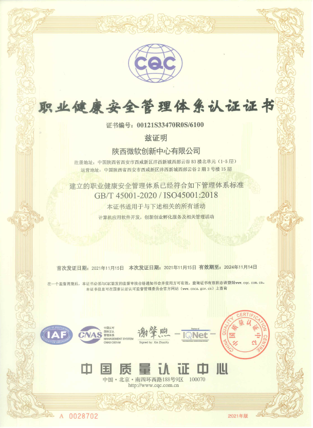 11月22日,陜西微軟創新中心有限公司(以下簡稱“陜西MIC”)順利取得中國質量認證中心與國際互認聯盟頒發的QES管理體系認證證書(質量管理體系<、環境管理體系和職業健康安全管理體系認證證書)。此次質量管理體系、環境管理體系和職業健康安全管理體系認證證書的取得,標志著陜西MIC科學化、制度化、標準化管理得到進一步提升,為公司經營生產...