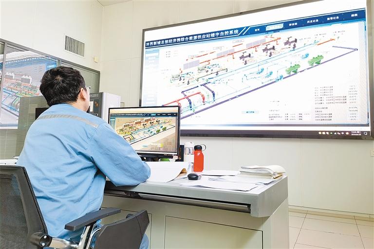 按理說,現(xiàn)在正是集中供冷季,應(yīng)是能源供應(yīng)站最繁忙的時節(jié)。看出記者的疑惑,張超興說:“能源供應(yīng)站建設(shè)了智慧管控平臺,可通過電腦或手機(jī),對站房內(nèi)設(shè)備進(jìn)行遠(yuǎn)程集中控制,并通過能耗分析系統(tǒng)及外界環(huán)境溫度變化實時調(diào)整運(yùn)行策略,保證系統(tǒng)安全、高效運(yùn)行。”
