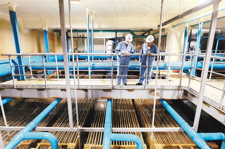 工作人員對蓄冰槽內(nèi)的設(shè)備管道進(jìn)行巡檢。