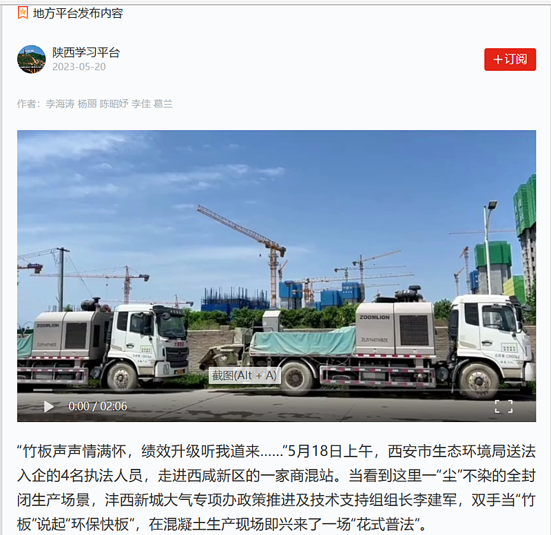“竹板聲聲情滿懷,績效升級聽我道來……低碳目標(biāo)更清晰,常抓環(huán)保不懈力;培訓(xùn)幫扶要成效,升級目標(biāo)盯得牢……”5月18日上午,西安市生態(tài)環(huán)境局送法入企的4名執(zhí)法人員,走進(jìn)西咸新區(qū)的一家商砼站。當(dāng)看到這里一“塵”不染的全封閉生產(chǎn)場景,灃西新城大氣專項辦政策推進(jìn)及技術(shù)支持組組長李建軍,雙手當(dāng)“竹板”說起“環(huán)保快板”,在混凝土生產(chǎn)現(xiàn)場即興來了一場“...